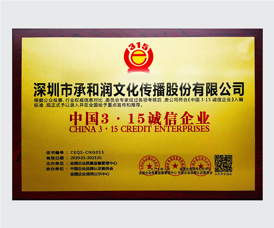 2020年,榮獲全國質量信譽雙保障示范單位、中國3.15誠信企業;